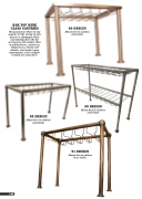BAR TOP WINE GLASS GANTRIES We manufacture these bar top gantries for the storing of wine glasses or champagne flutes conveniently above the bar serving area. We produce these in polished brass, satin brass, antique brass, chrome and stainless steel made to your requirements, a few examples of which are shown here. 90 DESIGN Shown here in stainless steel finish. 92 DESIGN Shown here in stainless steel finish. 91 DESIGN Shown here in antique brass finish. 89 DESIGN Shown here in stainless steel finish. 104