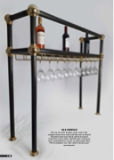 210 DESIGN We can also offer backbar racks such as the example shown here made with the rails in natural blackened mild steel finish and the ball joint connectors, base sockets and wine glass stemware rods in polished brass to give an interesting effect. Please telephone our sales staff to discuss your requirements. 118